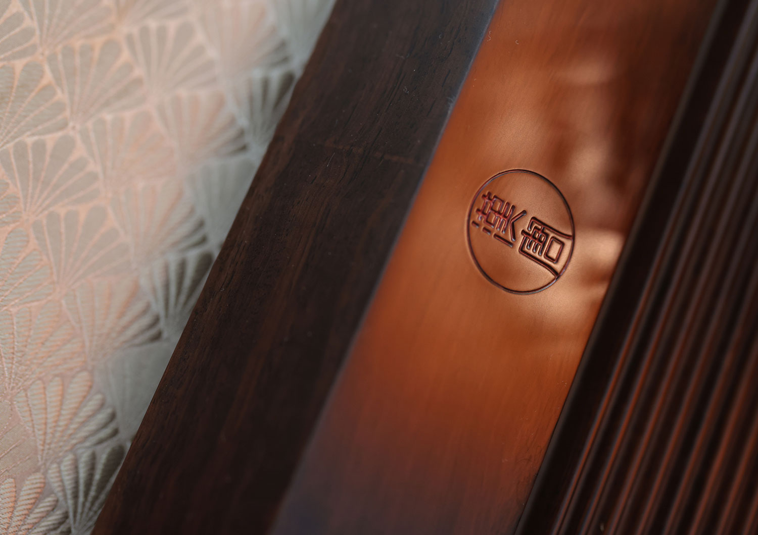 多面切割,汉唐朱钤,棱边的理性、圆形的感性、甚至三角形的稳固感完美地融合在一起,边角精细打磨,木的质感竟可温润如玉器,沉古木色与雍容丹朱,共同展现出理想主义的美好。