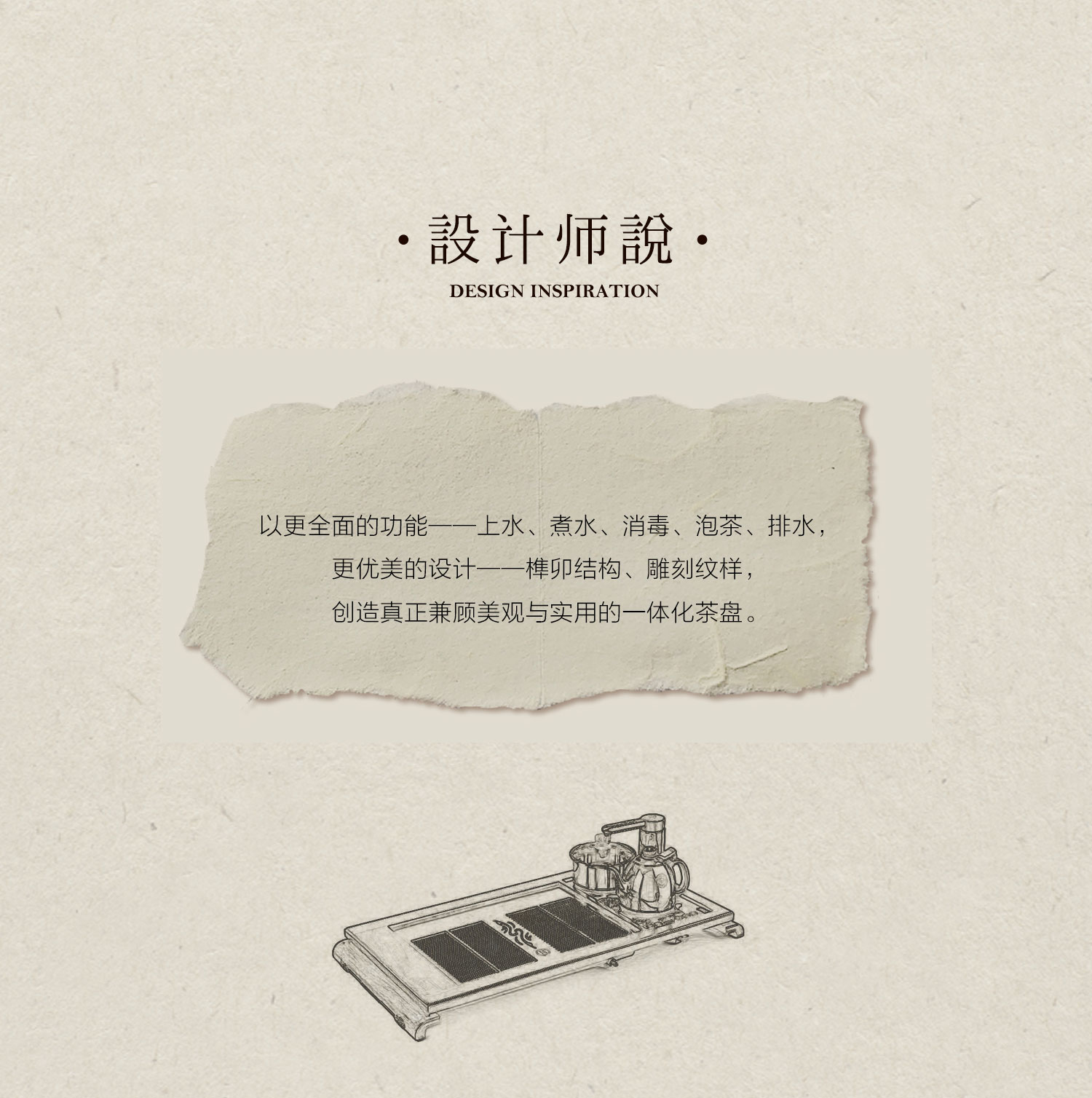 经典榫卯框架结构勾勒出凝练线条,外形大气古朴,来自东方的美自然呈现。潜心设计,盘面可直接与煮水电器衔接安装,木电一体,严丝合缝,实用便捷。