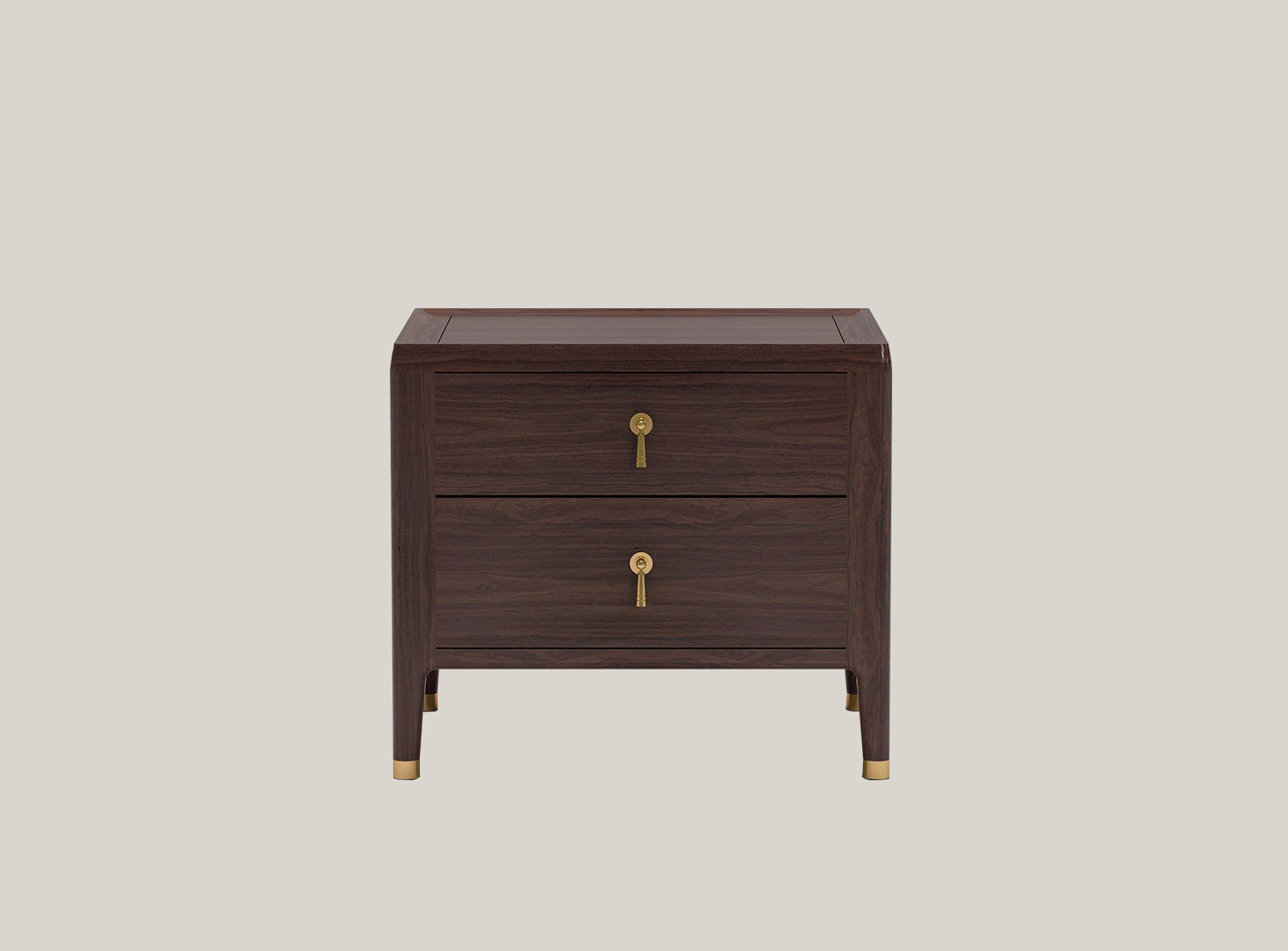 床头柜为简约的方正造型、双层抽屉结构,但细节设计与工艺均十分用心,经倒角工艺处理,轮廓线条的流转演变,细微的弧度与粗细变化,让整体尤显玲珑可爱。