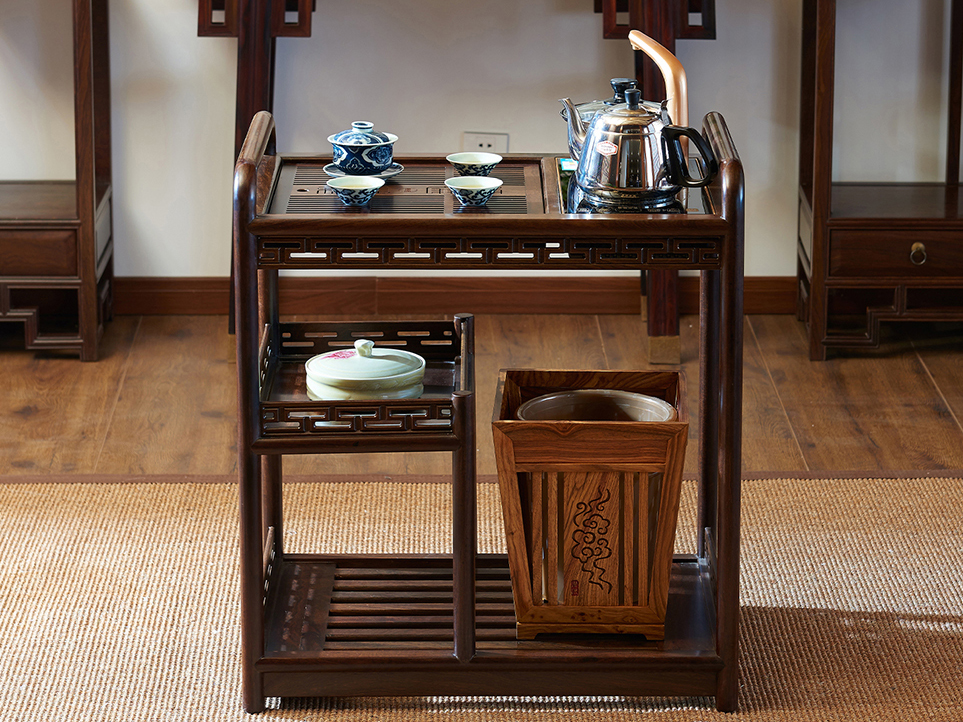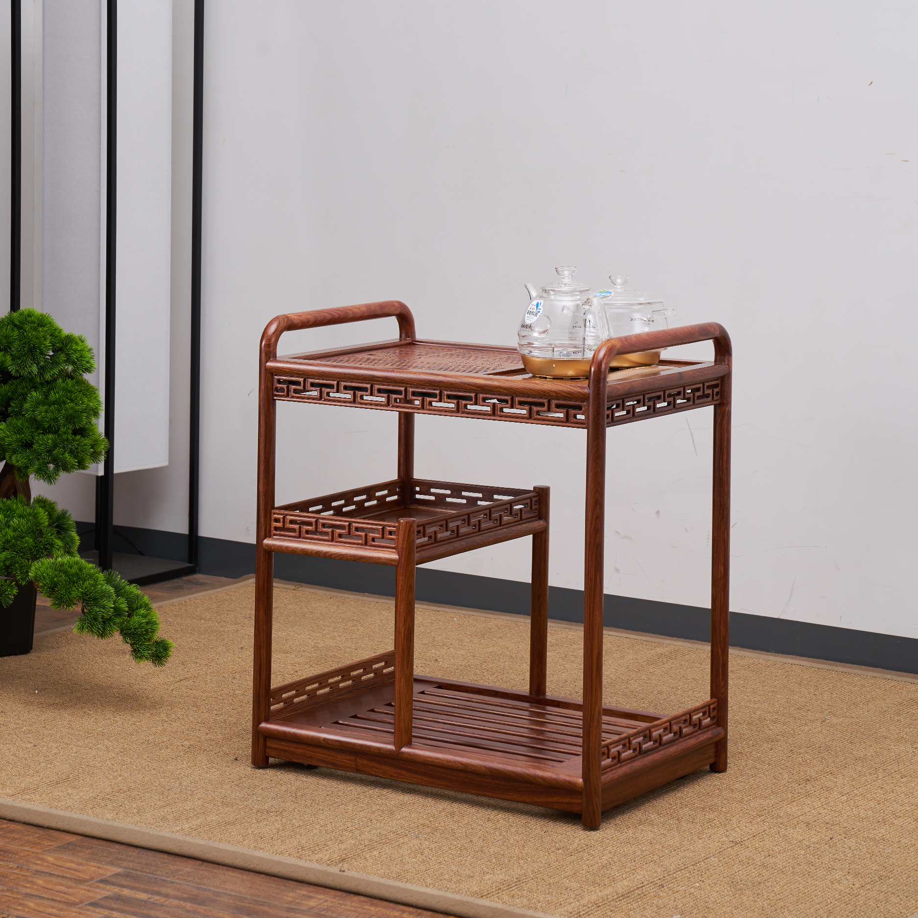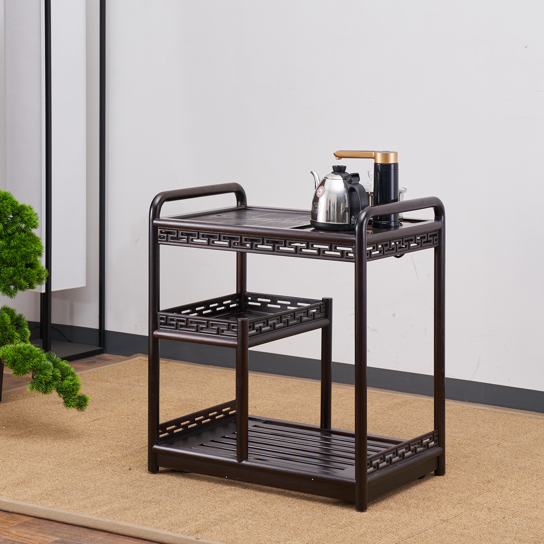 顶部两端设计有造型圆润、打磨光滑的把手,符合人体工程学,推动或直接搬动茶车更方便。