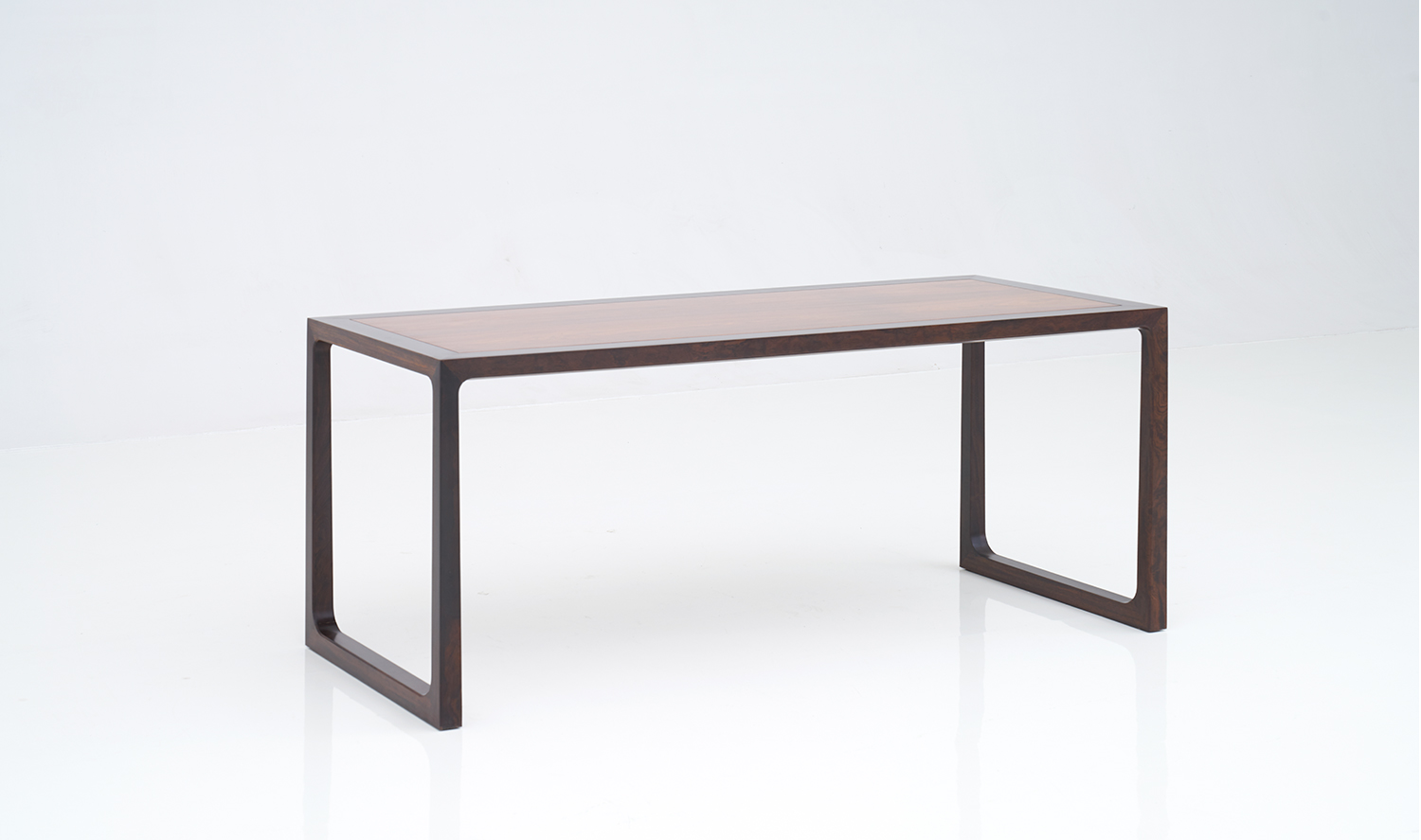 桌腿设计来源自传统案的“框腿”,又借用中国园林的框景巧思,外部直角,内边沿弧形圆角,方材各切面明暗交替,虚实衔接。使用之时,家具线条框出的景内,呈现远近高低各不同的效果,引人遐思。