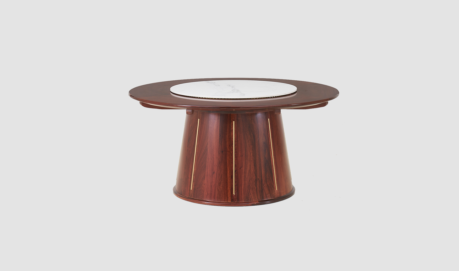 光滑的岩板转盘易于用餐后清洁保养,精密工艺制造,构件严丝合缝,转动灵活。底盘、底座全实木打造,承重性强,确保餐台牢固稳定。